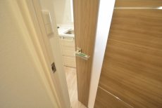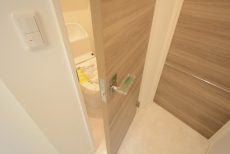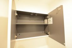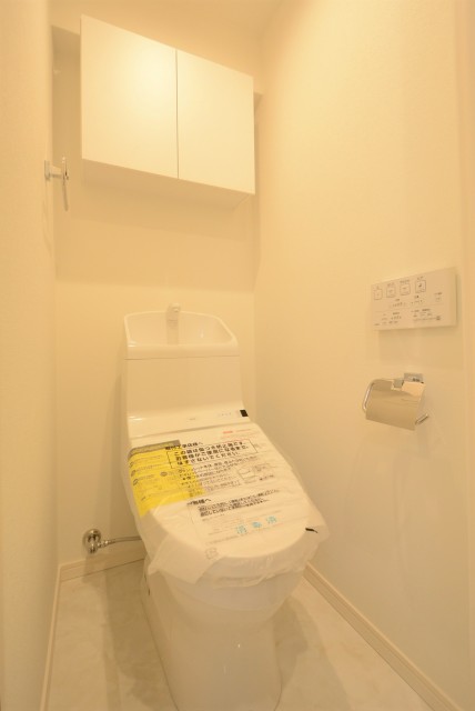 トイレはもちろんウォシュレット付。吊戸棚が設置されていますので、トイレット