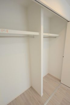 窓の反対側には壁一面を使った大きなクローゼットが付いていました。間口が広いので、中の確認や出し入れがしやすくて使いやすそうです。