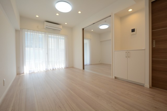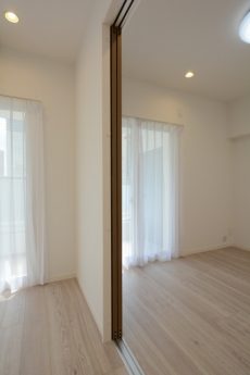 このお部屋の仕切り戸は、開けていくと壁部分に収納されて全開にする事が出来ます。