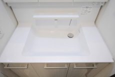 水栓はハンドシャワータイプですので、忙しい朝のシャンプーなども可能ですよ。洗面ボウルも広めで水がこぼれる心配もありません。