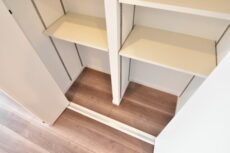 写真左は廊下突き当りの収納内部です。奥行きのある大きな収納です。ご自身でアレンジすればかなりの収納力が期待できます!