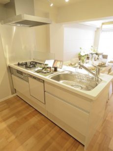 キッチンは食洗器、浄水器一体型水栓、3口コンロとスペックがグー。