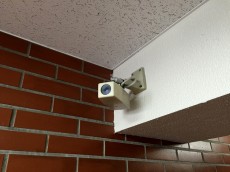エントランスホールはレンガ調タイル張りでクラシカルな雰囲気です。管理人さんはいらっしゃいませんが、防犯カメラが目を光らせています。