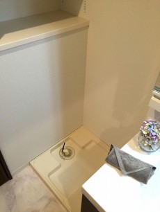 洗面台の横には、洗濯機スペースがあり、上部には収納がついてます。