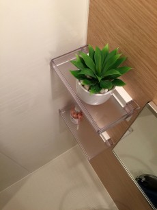 壁に収納がついてますが、よくある高い所じゃないので手が届きやすくてgoodです!