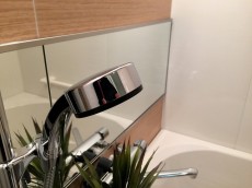 水栓はハンドシャワータイプですので、朝のシャンプーはこちらでどうぞ。