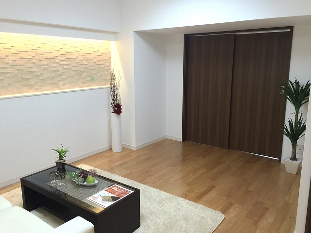 こちらのお部屋の壁も一部エコカラットで装飾されています。