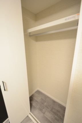 そして洗面室向かい側には大型のウォークインクローゼットがつくられていました。棚がついているので整理整頓もしやすそうですね♡