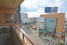 正面のビルは屋上がプールのようになっているので、晴れている日は水面に空が反射してけっこう綺麗なものですよー