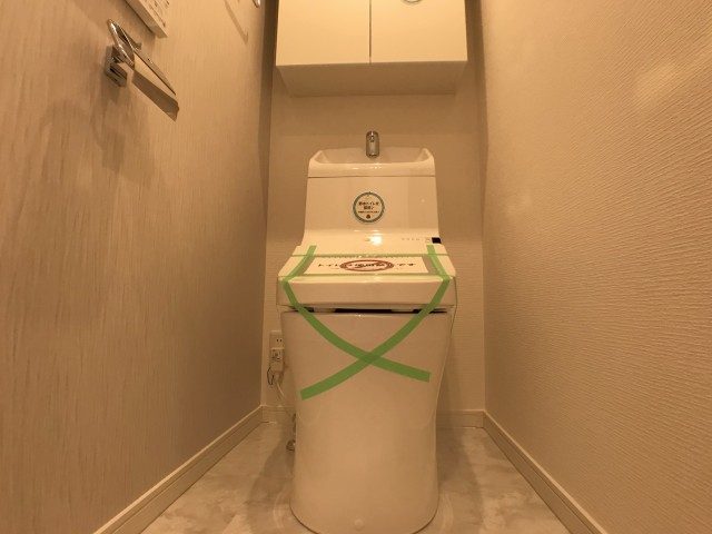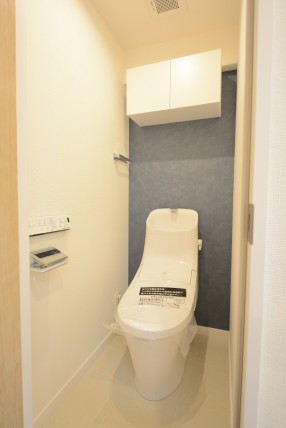 吊戸棚も付いているので消耗品などのストックもトイレ内に置いておくことができますね。
