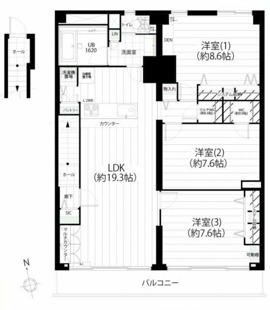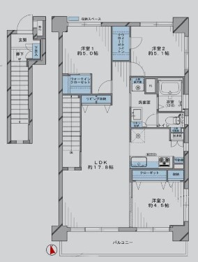 お部屋は3LDK、専有面積が97.68㎡となってます。
