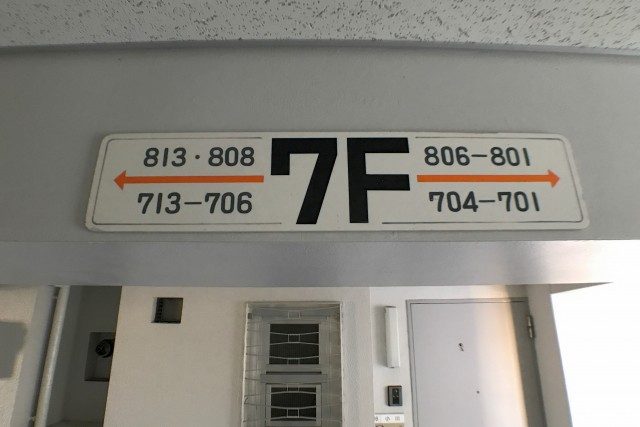 今回のお部屋は8階ですが、玄関入口は7階にあります。