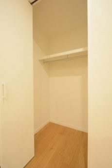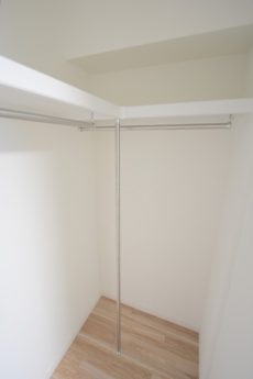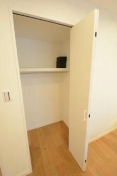 こちらのお部屋のクローゼットは幅はそんなにありませんが、奥行きがあるので大きい物でも入りそうです。