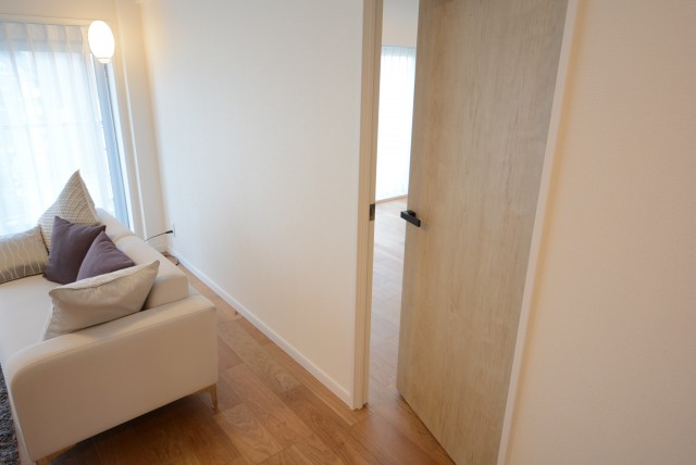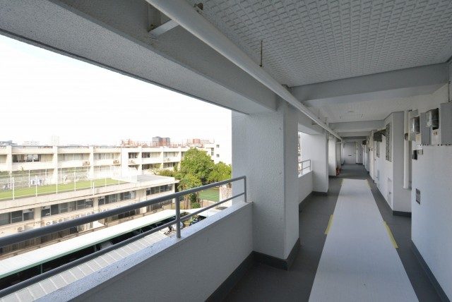 エレベーターを降りて外廊下を行くと、お部屋の玄関に到着します。