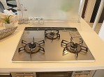 3口コンロと大きなシンク、調理スペースもしっかりとあり料理のはばも広がりそうです♪