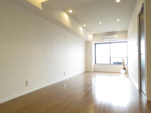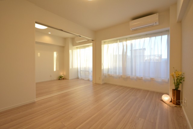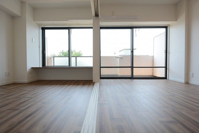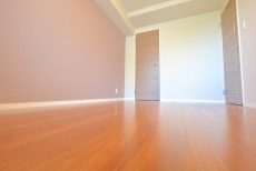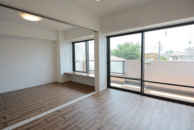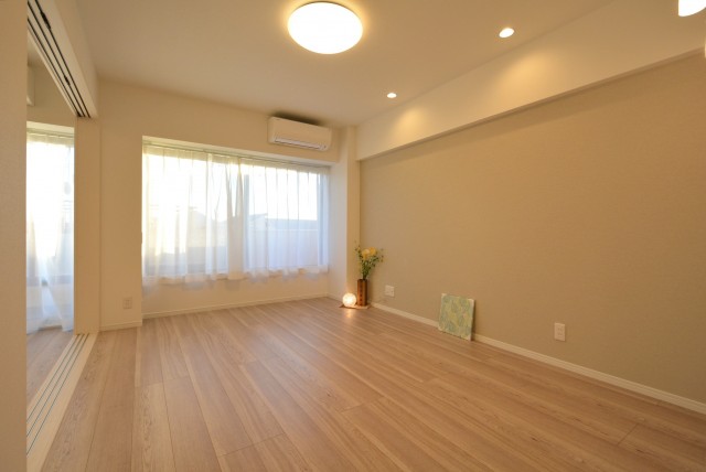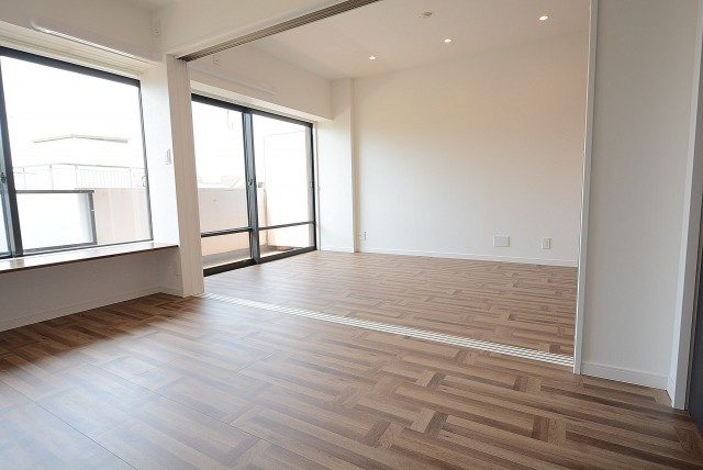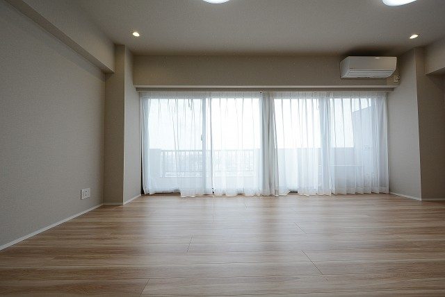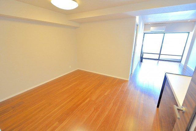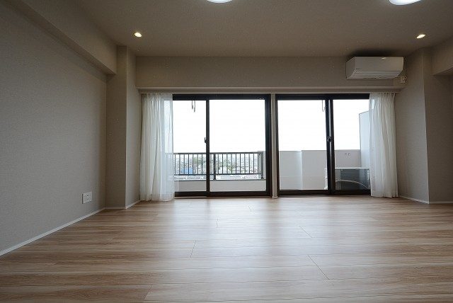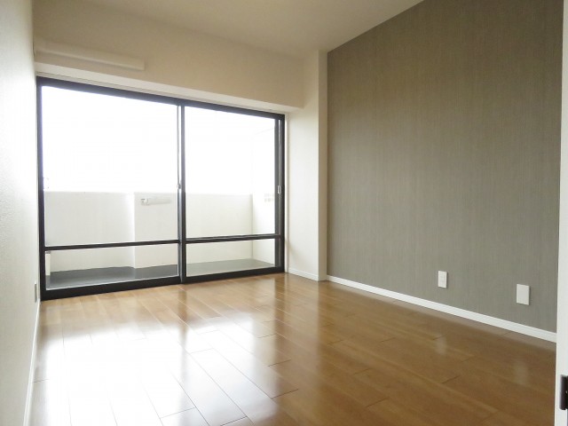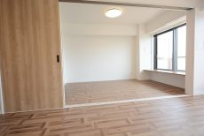 7.0帖のバルコニーに面している洋室です。ご覧の通り壁一面大きな窓からは光が射し込み開放感ある明るいお部屋です。