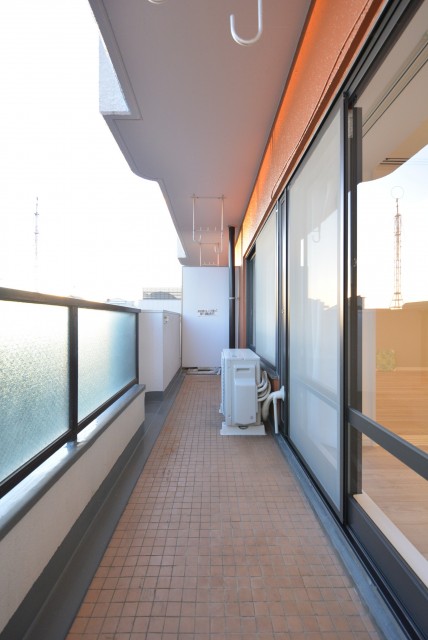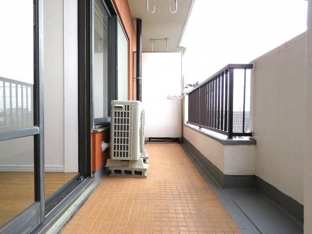 南向きのバルコニーです。(7.14㎡)キレイなバルコニーのタイルの上にはイスを置きたくなります。お風呂上りに座って涼みたくなります~夜の景色はどんな風にみえるのでしょう~