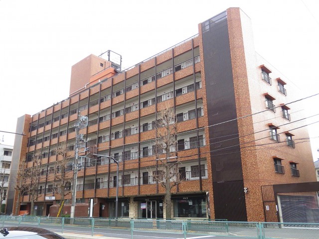 こちらのブラウンのタイル貼りのマンションが自由が丘ハイタウンです。