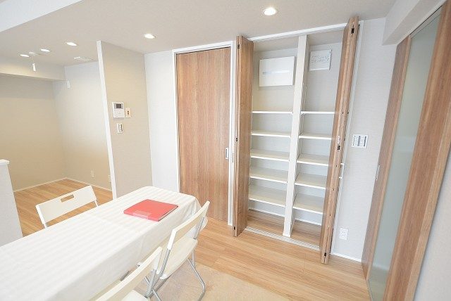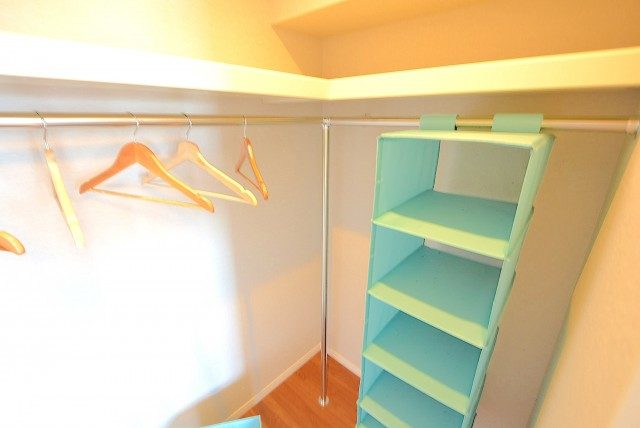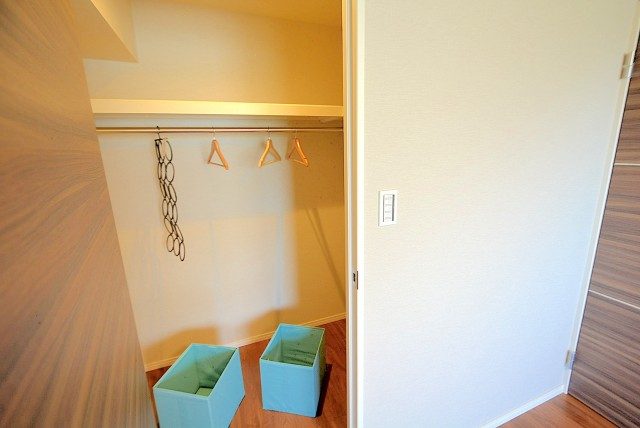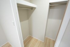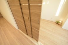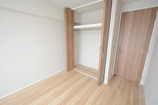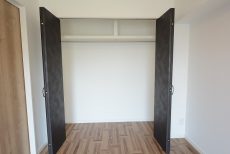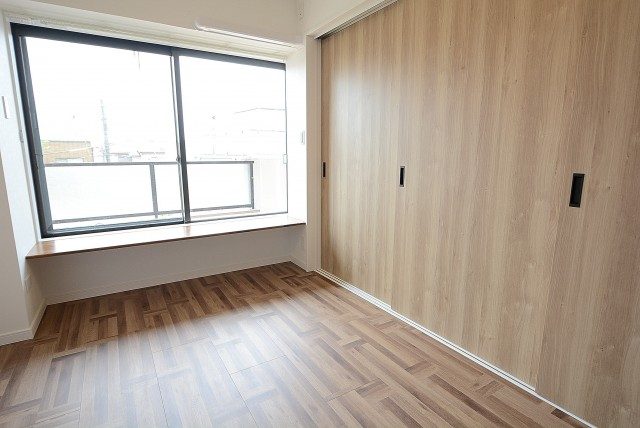 3つ目のお部屋はリビングのお隣にあります。2面採光の明るく風も通る洋室7.7帖です。クローゼットはもちろん!収納棚も設置されています。お気に入りの小物を飾ったり、本を置いたりと見せる収納!インテリアとしても楽しめそうですね。
