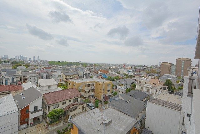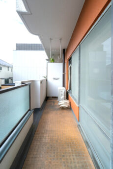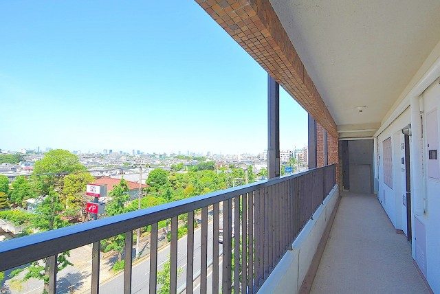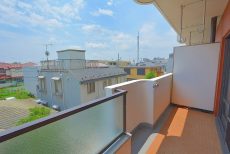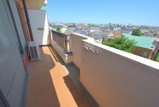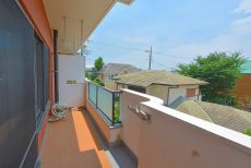 広さ7.14㎡、南向き。正面には戸建てが並び陽射しを遮ることもありませんので、お洗濯物も気持ち良く乾きますよ。西側には建物があるので干すなら午前中からがお勧めです。