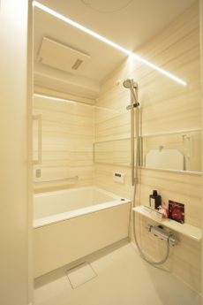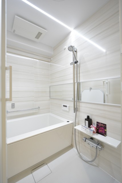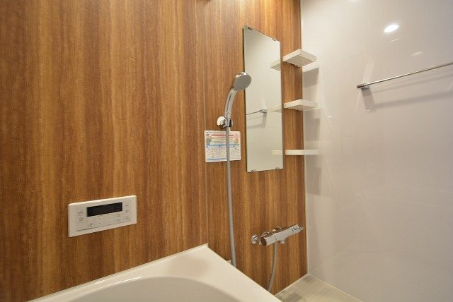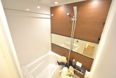 追い炊き・浴室換気乾燥機付の浴室です。浴室パネルはシックで落ち着きのある雰囲気です。