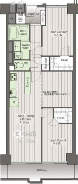 ライフスタイルに合わせて3LDKまたは2LDKとして使い分けが可能です。