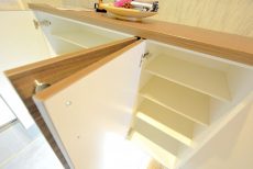 雨の日に履いた靴を濡れたままシューズボックスにしまうとカビや匂いの原因になったりします。乾くまではシューズボックス下のスペースに置いておけば玄関をスッキリ保てますよ。