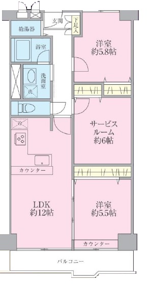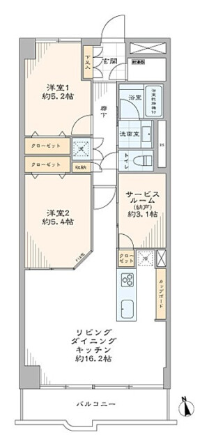 サービスルームとは、採光などの関係で法律上「洋室」と呼べないお部屋のこと。あくまでも法律上なので居室として使えることがほとんどです。ただし、このお部屋はやや小さいのとガラス扉ということで、普通の洋室というよりはワークルームや子供部屋、納戸などに使うのがよさそうです。