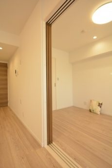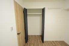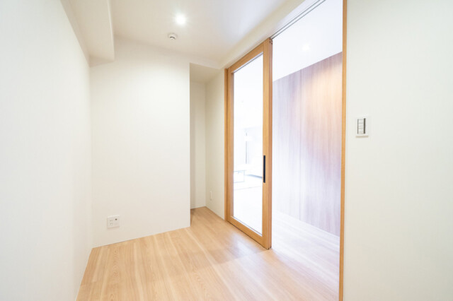 LDKに隣接したガラス扉のお部屋です。窓はありませんがLDKからの光が入るので日中でも暗いなんてことはありませんよ。LDKとの一体感を活かして書斎やホビールームはいかがでしょう。もちろん寝室でもOKですが、その場合はカーテンやロールスクリーンでプライバシー対策をした方がいいと思います。天井まである大きなクローゼット付き。
