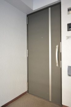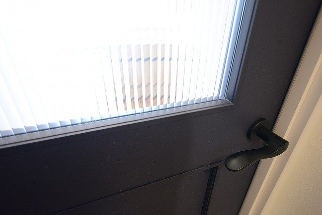 廊下正面にあるスリットガラス入りの扉です。左サイドがガラスになっているので、開放感を感じます。扉の先にはドーンと広がるLDKが待っています~