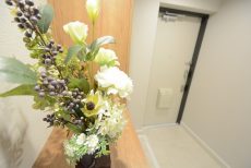 エントランスの自動ドアは円になっていてマンションというよりホテルの入口のようです。オートロックはありませんが、日勤の管理人さんがいるので何かと安心。エントランスの横にはマンション専用のゴミ置き場もありました