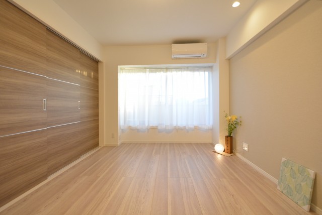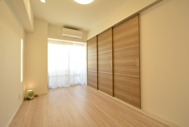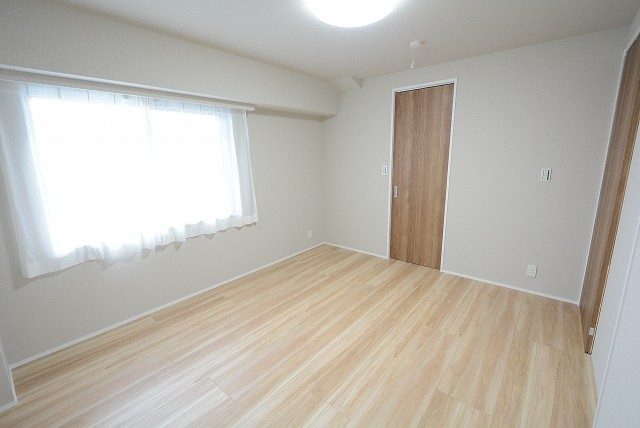 続いて洋室6.6帖の明るいお部屋です。壁一面にある嬉しいクローゼット付き!