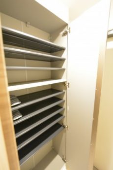 シューズボックスはトールタイプ。棚の高さが変えられるので、ブーツなどの背の高い靴でも収納可能です。