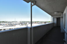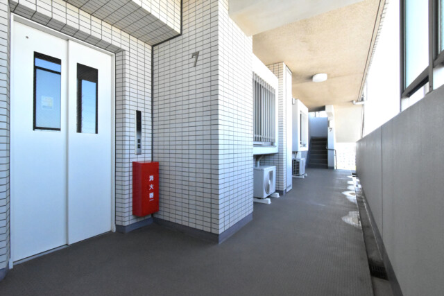 エレベーターを7階で降りて、明るい外廊下をお部屋へ向かいます。