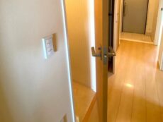 木目が抑えめなのもレトロな感じがして個人的には好みです。上り口はしっかり高さのあるタイプ。ちょっと腰掛けたりできて便利なんですよね。最近は段差が小さいところも見かけますが、靴を脱ぐ文化にはやっぱりこの方がしっくりくると思いませんか?