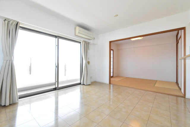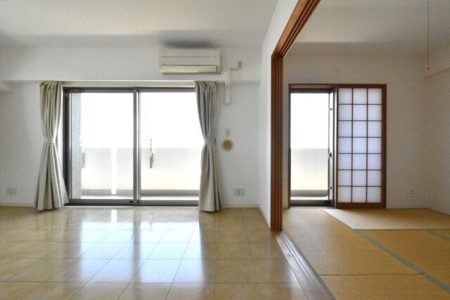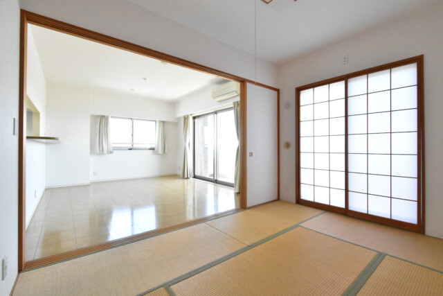 LDKと和室の仕切りは引き込み式の引き戸なので、開放すればご覧の通り。つなげて使用することも可能です。ご家族構成や状況に合わせてフレキシブルに使えるのは有難いですよね。近頃は大勢で集まる機会もなくなってしまいましたが、以前の生活が戻った暁にはみんなで集まって大宴会などいかがでしょう?
