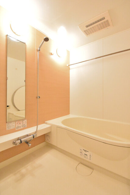 浴室は白を基調に木目パネルのアクセント。温かみがあってリラックスしたバスタイムを過ごすのにピッタリの雰囲気ですね。