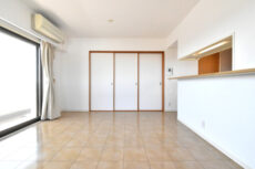 柱などの凸凹のないきれいな形のお部屋です。普段生活している分にはあまり意識しないかもしれませんが、いざ家具を入れようとするとその差が結構大きいんですよ。LDKと違ってフローリングが張られています。