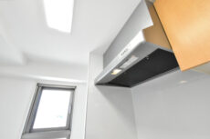 窓は下半分はFIX窓で開きませんが(開いたら怖いですけど笑)上半分は開きます。縦にすべりだすこのタイプの窓は風を効果的に取り入れられるそうですよ。キッチンには最適ですね。とはいえ、換気は窓だけに任せず換気扇も活用しましょう!