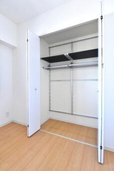 二面の窓から見える景色、並ぶとさらに素晴らしいですね。収納はウォークインクローゼット!!!隣の洋室に付いていたのと同じ可動式のハンガーポールが設置されています。床面を衣装ケースなどで上手く使えば、より収納力をアップすることもできそうですね。