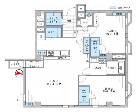 南東角部屋。LDK、各居室ともゆったりした広さが確保されており、のびのび暮らせそうです。