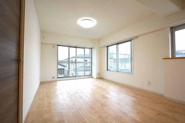 今回ご紹介するお部屋は1階角部屋、専有面積91.00㎡の4LDK。角部屋かつ13m超のワイドスパン設計のため窓が多く開放感のあるお部屋です。4LDKなのでご家族が増えても安心ですよ。