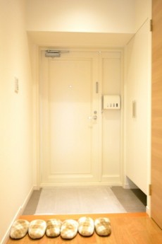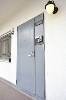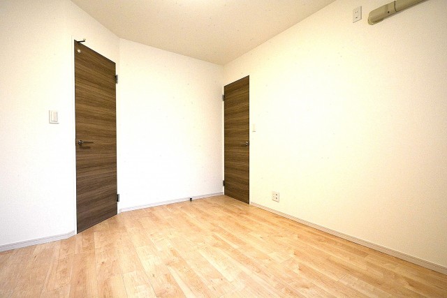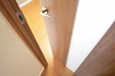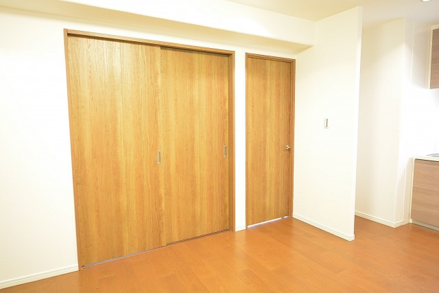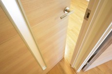 左側に洋室、右側に洗面室、物入れ、トイレの、正面にLDKの扉が設置されています。順番にご紹介します。