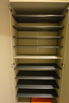 日用品のストックやシューズBOXに入りきらない靴などもまとめてこの中に仕舞っておけそうです。扉をしめれば見た目もスッキリd(´▽`)