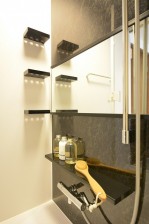 浴室は白を基調にダークトーンのアクセントパネルを使用した高級感のある雰囲気。リッチな気分で湯舟に使って一日の疲れを洗い流しましょう。追い焚き機能や浴室換気乾燥機も完備しています。