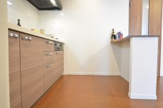 オープンタイプでリビングダイニングの光も届き、明るく、開放感のあるカウンターキッチン。