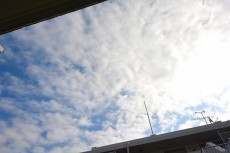 バルコニーから上を見上げたところ。今日はよく晴れそうです。
