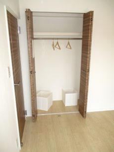 こちらは約5帖の洋室3。北向きの窓のあるお部屋で、入口に引き戸を使いスペースを有効に使えるようになっています。引き戸を開放して子供部屋にしたりもいいかもしれませんね。